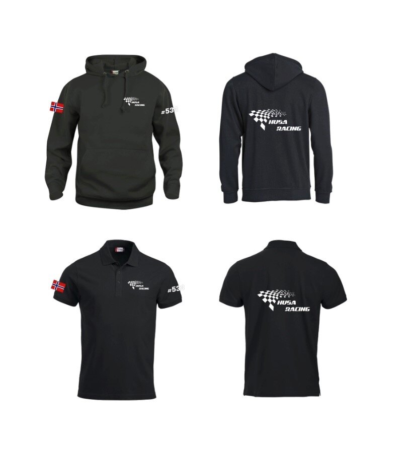 Klær og caps er sort med Husa Racing logo, #533 og Norsk flagg. Husa Racing Pins i stål. Pins feks til bruk på jakke, genser og dress.